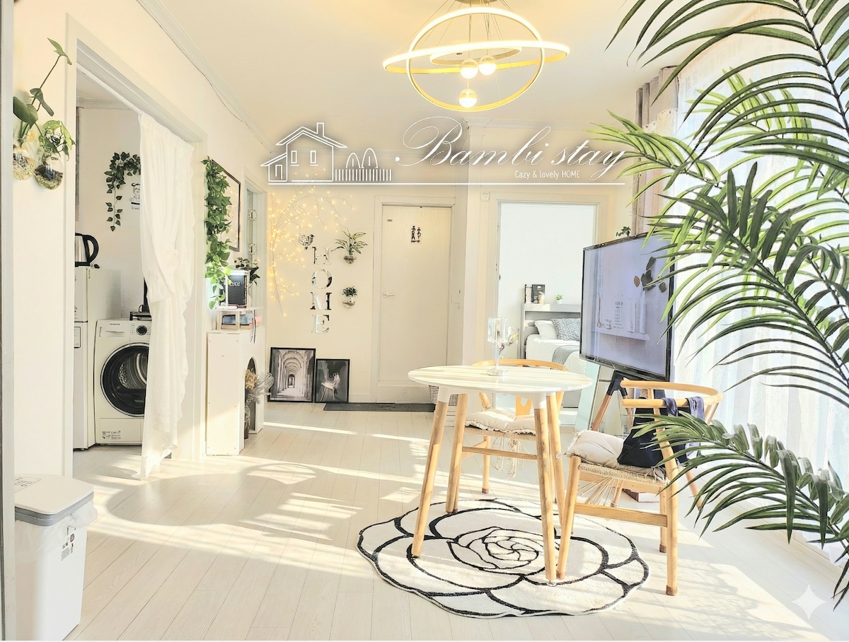 🎉🎈 Bambi stay는🎈🎊 디즈니 대표 캐릭터인 사슴의 이름으로 사슴은 불로장생, 행운, 성공, 부를 상징하기로 하죠. 저희 숙소를 이용하시는 모든 분들에게 좋은 기운을 드리고자 하는 마음으로 인테리어를 꾸몄고 가족과 친구,커플들이 내 집처럼 편안하게 이용할수있는 6인용 (최대8인) 숙소입니다. 공간 내부에는 편안한 휴식과 영감을 드리기위해 아름다운 조명과 생화향의 싱그러움 냄새를 느낄수 있습니다.