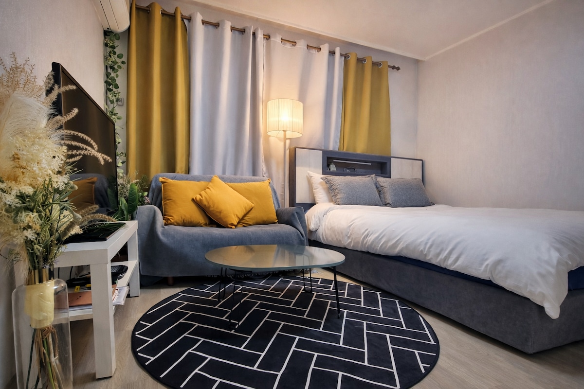 🌿 안녕하세요, 스테이해온입니다. 부산대 중심가에 위치해 지하철역 도보 5분, 김해공항·부산역 차로 25분대로 이동이 편리한 감성 숙소입니다. 🚇✈️ 한옥 고가구와 모던한 가구가 어우러져 한국 전통 감성과 현대적 분위기를 함께 느낄 수 있습니다. 🌸 인조잔디 테라스에서는 별도 서비스 이용 시 캠핑용품과 바비큐를 즐기며 도심 속 작은 캠핑이 가능합니다. 🌙🏕️ 주방에는 식기류, 기본 조미료, 밥솥, 토스트기, 전자레인지, 캡슐 커피 머신을 갖추어 간편한 요리가 가능합니다. 🍳☕️ 거실·침실에는 보드게임(루미큐브 등), 넷플릭스·wavve·티빙 지원 TV, 블루투스 스피커가 있어 여유로운 시간을 보낼 수 있습니다. 🎵 👶🏻 저상 매트리스로 아기와 함께 안전하고 편안하게 머무르실 수 있어 가족 여행에도 추천드립니다. 부산대 핫플 도보권 숙소에서 친구·연인·가족과 특별한 추억을 만들어보세요. ✨