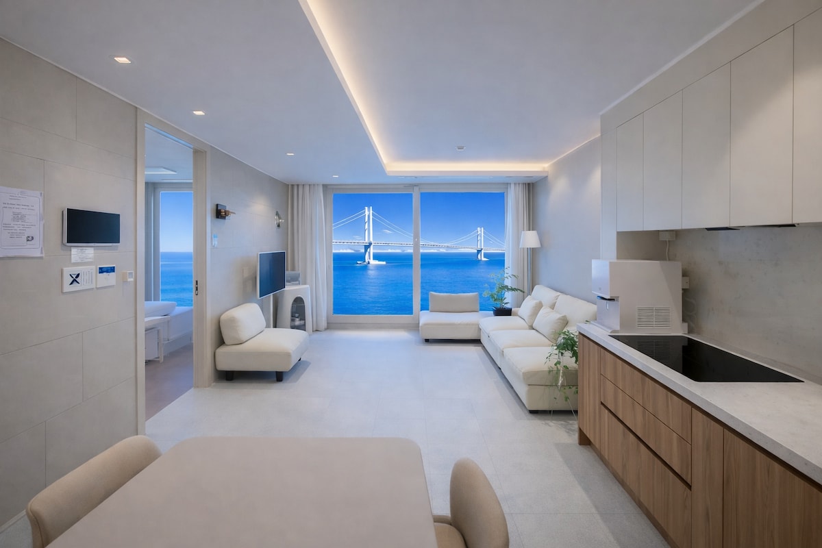 The Wave•再次访问第一名•两间卧室+宽敞•海1秒•最佳位置•光安大桥全景海景•爵士乐LP•免费停车