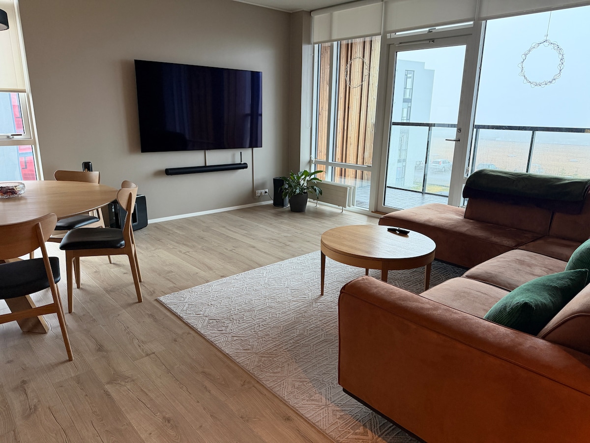 Modern 1-bedroom, 1-bath apartment on the 8th floor in Fossvogur with stunning views of Reykjavík and Mt. Esja. Free parking. Features a fully equipped kitchen with fridge and freezer. Includes parking space. Bus stop 1 min away, 10 min drive to downtown. Grocery store and bakery within walking distance. Laundry available in the building. Crib for infants available on request. A bright, convenient base for your Reykjavík stay.