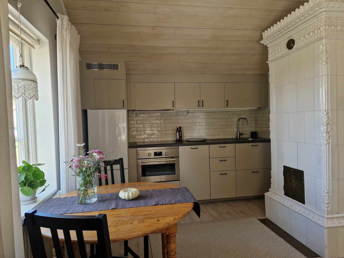 Unikt boende i eget hus med egen trädgård och uteplats,närmsta badplats ca 500 meter bort. Huset är på 25kvm samt ett sovloft på 10kvm. Ljusa ytor och helkaklat badrum med tvättmaskin. Kök med induktionshäll samt kyl och frys. Golvvärme i hela huset,ger en jämn och bra uppvärmning. www.instagram.com/studiostyrso Modern studio with light interior and a new kitchen,central floor heating for the cold winterdays. Compact living at its best.. Ingen rökning inomhus/No smoking inside the house.