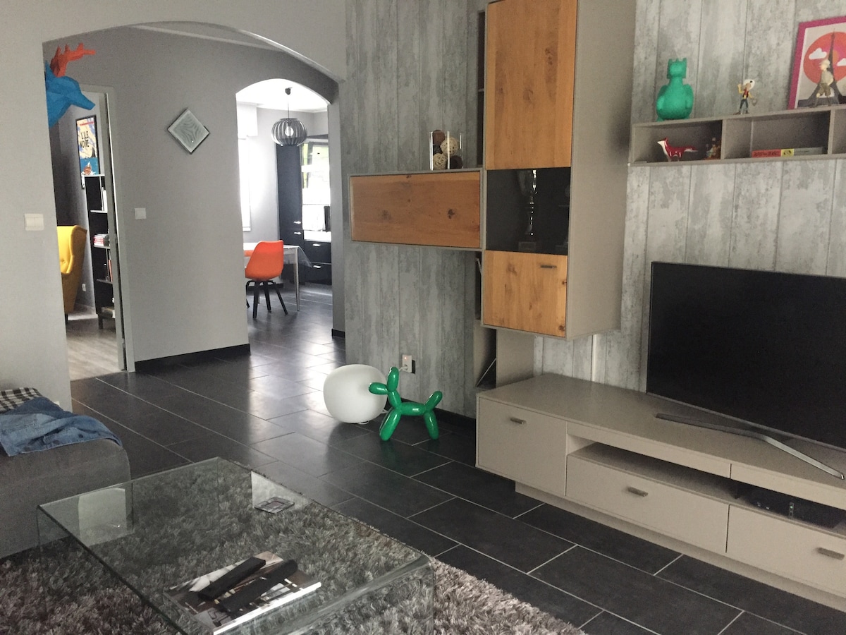 Tout juste rénové, venez séjourner dans notre lumineux et charmant 3 pièces. Il est situé dans une maison bi-famille, à l'étage, dans un quartier calme. L'appartement dispose d'un bel espace de vie avec une cuisine toute équipée. Il comprend deux chambres. Une salle de douche comprenant également le WC. Le canapé est convertible. Nous pouvons donc vous accueillir à 6 voyageurs. Le logement dispose d'une climatisation.