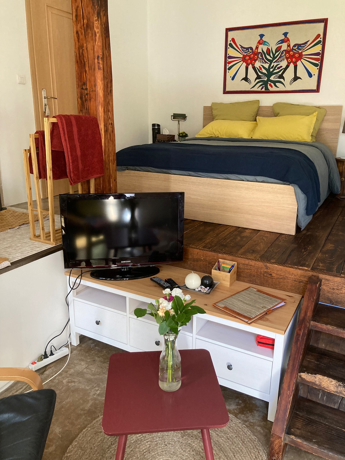 Julien et Line vous proposent un apparemment comprenant un lit 2 places, une cuisine équipée, une smart TV de 40" et d'une connexion WI-FI 6, une belle vue donnant sur le centre-ville d'Haguenau et le clocher de l'Église Saint-Georges (XII~XVIIe). Pour le petit déjeuner, vous avez à votre disposition une corbeille de fruits, une dizaine de thés différents, du café, des céréales, des confitures, du miel, du chocolat, des œufs, des yaourts, du fromage... Late Check-out 12h30