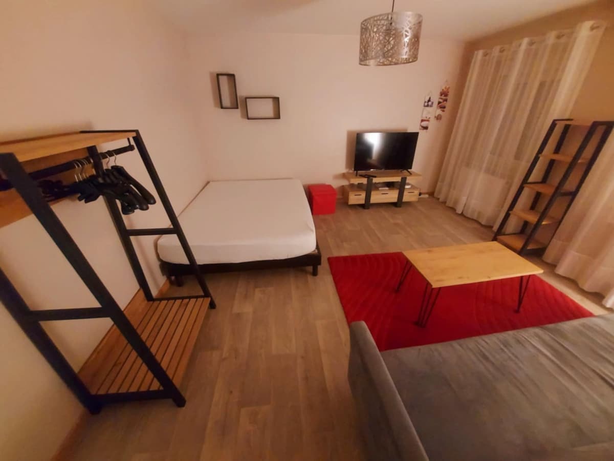Profitez d'un charmant logement situé idéalement, proche des rues piétonnes, vous pourrez vous y garer facilement. Convient aux profils professionnels. -Netflix à disposition, TV connectée, WIFI très haut débit -Grand lit "Queen Size" 160*200 -Bar/espace travail -Cuisine séparée et équipée : four, micro-onde, frigo, cafetière, bouilloire -Machine à laver, penderie, armoire à chaussures -Linge de lit, serviettes, sèche cheveux, fer à repasser, -place de parking privée et gratuite