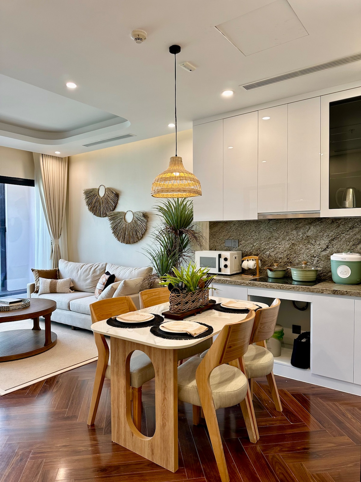 Căn hộ cao cấp 2 phòng ngủ – 2 vệ sinh phong cách Organic Botanical, đầy đủ tiện nghi: máy giặt, phòng tắm khép kín, máy sấy tóc, wifi miễn phí, bếp và bàn ăn. Vị trí trung tâm, kết nối nhanh: • Đối diện Siêu thị GO • Nằm trên con đường nhiều nhà hàng, cafe sang trọng • 10 phút đến TTTM Aeon Mall • 10 phút đến sân bay Cát Bi • 10 phút đến Nhà hát Lớn Hải Phòng • 10 phút đến chợ Lương Văn Can – thiên đường ẩm thực • 15 phút đến VinWonders • 8 phút đến trung tâm phố Tây – khu bar & lounge