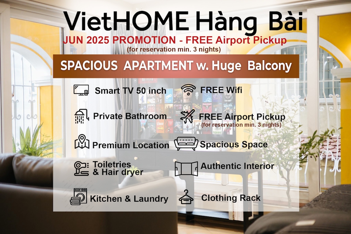 * PROMOTION FOR RESERVATIONS MIN. 3 NIGHTS: FREE ONE WAY AIRPORT TRANSFER * *Elevator is in the building *NETFLIX account pre-installed *20 minutes walk to Hoan Kiem lake & Old Quarter Area Welcome to our house - a newly renovated apartment & just a short walk to Old Quarter, while quiet enough to relax from the chaotic street noise. You will get a chance to truly live a Hanoian life with local food in a secure surrounding area. While in Hanoi, live like a local!