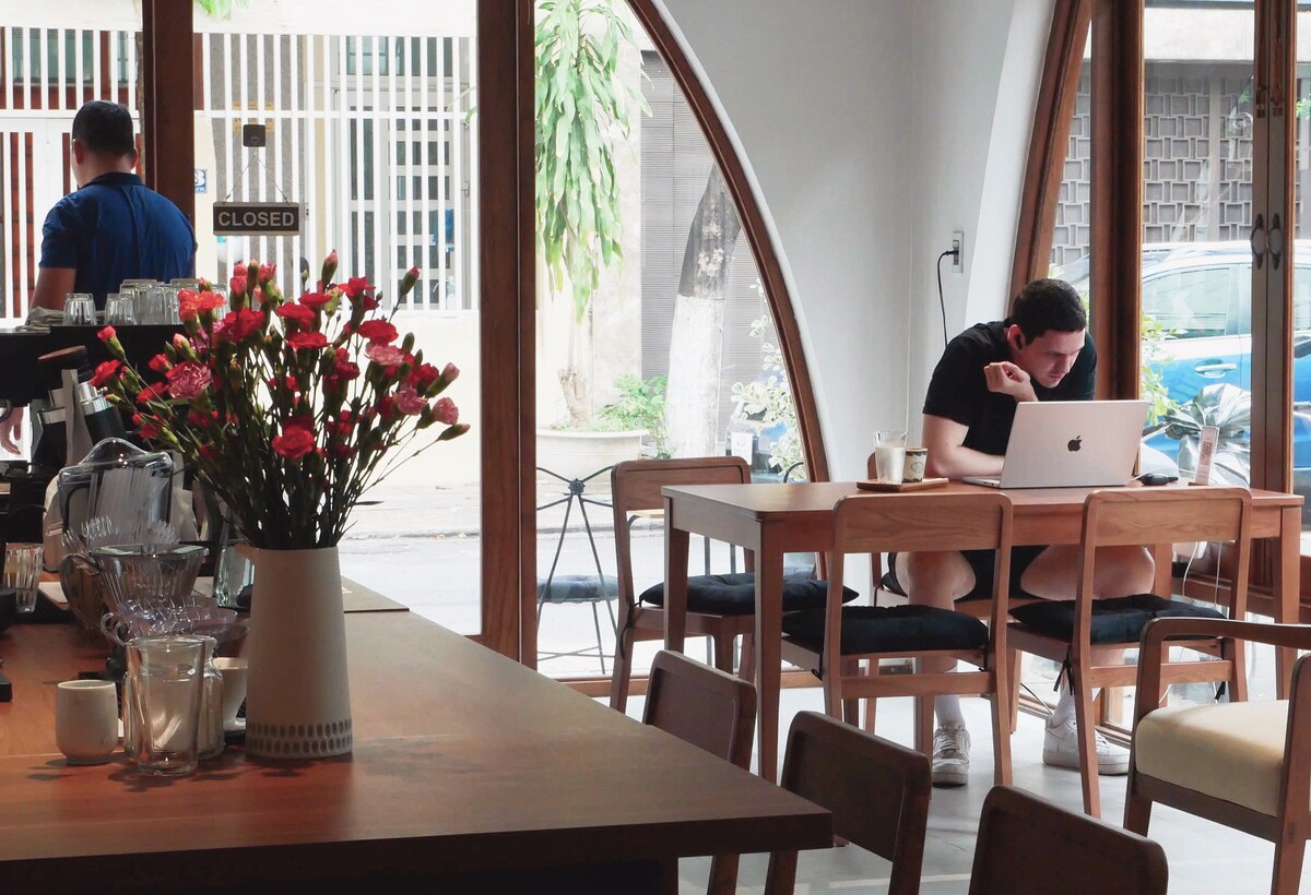 Autumn retreat — warm tones, soft textures, and cozy corners made for slow mornings & movie nights. Our 1BR is spacious w/ comfy sofa bed, and a full kitchen that you can whip up a meal before streaming Netflix on the 100-inch projector screen. Tucked in a quiet cul-de-sac by Han Market and just minutes from Dragon Bridge, it offers both city life and peace Clean, calm, and stylish — like golden hour captured in a room. Take the elevator up, drop your bags, and let Da Nang slow down for you.