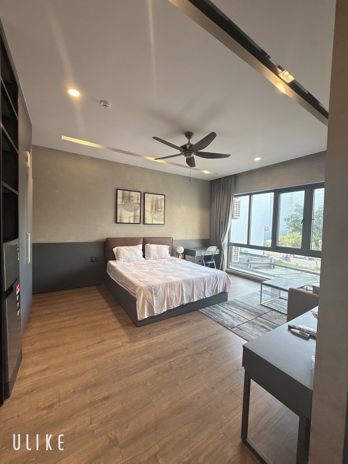 Căn hộ studio hiện đại, có thang máy, đầy đủ nội thất. Vị trí trung tâm thành phố, cách bãi tắm Thanh Khê 400m. Căn hộ cực kỳ thoáng mát, sạch sẽ, tất cả các phòng đều có 2 cửa sổ ngoài trời đón ánh sáng và gió tự nhiên. Dân cư xung quanh văn minh, lịch sự. Tại đây có thể ngắm toàn cảnh thành phố: Vịnh Đà Nẵng, các tòa nhà trung tâm thành phố, sân bay, bến cảng, vịnh Đà Nẵng, bán đảo Sơn Trà, đèo Hải Vân, núi Bà Nà.... Ở đây bạn sẽ có những trải nghiệm vừa mới lạ vừa thân quen như ở nhà.