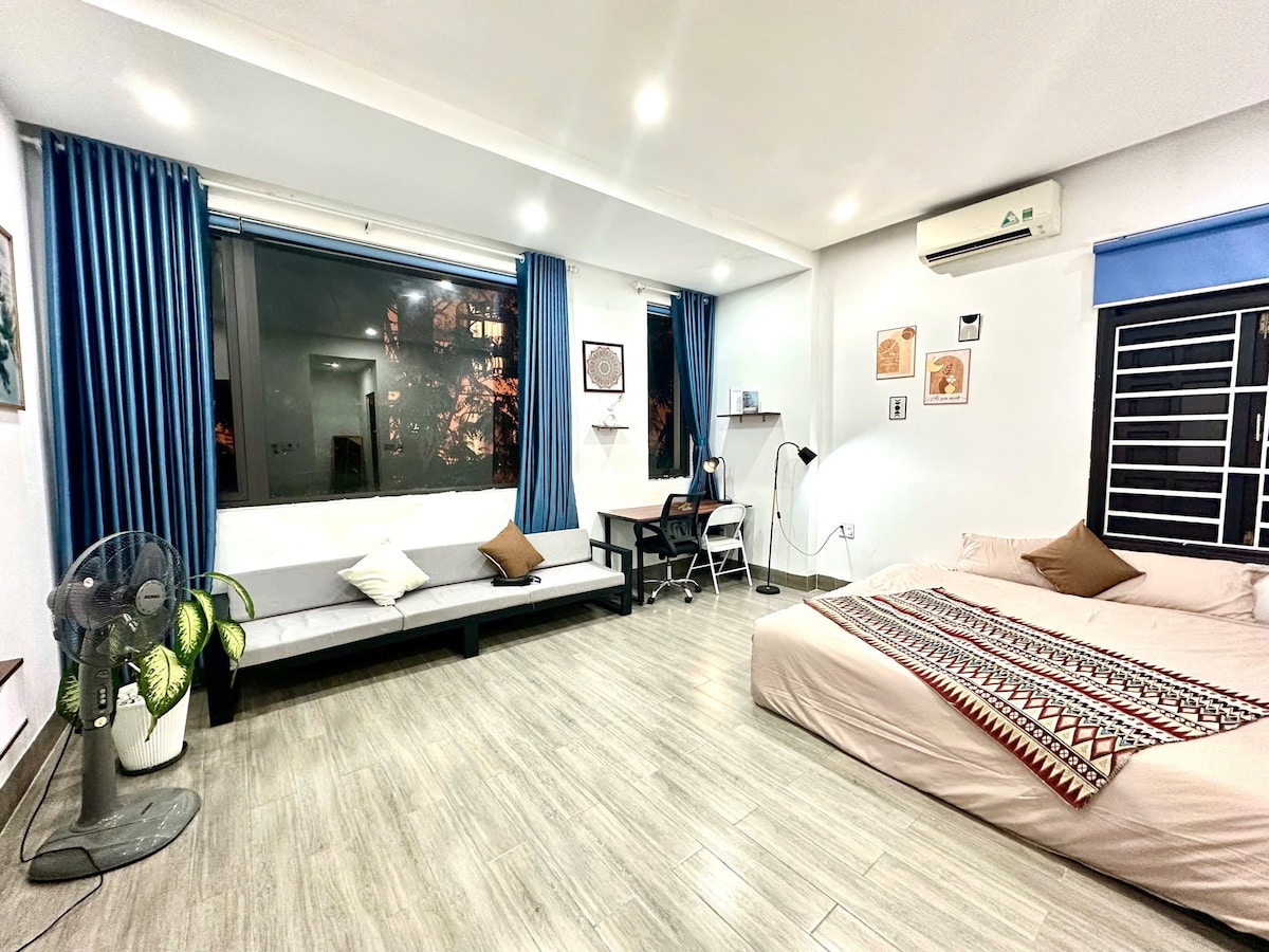 Phòng được thiết kế hiện đại, gọn gàng và thoáng mát, mang đến cảm giác như đang ở chính ngôi nhà của bạn ✨ Tiện nghi nổi bật: ✔️Giường êm ái, jđiều hòa mát lạnh, wifi tốc độ cao ✔️Phòng tắm riêng sạch sẽ, trang bị đầy đủ đồ dùng cá nhân ✔️Khu bếp tiện nghi để bạn tự nấu ăn ✔️Chỗ đỗ xe miễn phí, an ninh đảm bảo ✔️Hệ thống phòng chống cháy an toàn ✔️Quán cà phê ngay bên dưới với ưu đãi giảm 10% cho khách lưu trú ✔️Vị trí thuận tiện, bạn có thể đến các điểm tham quan nổi tiếng.