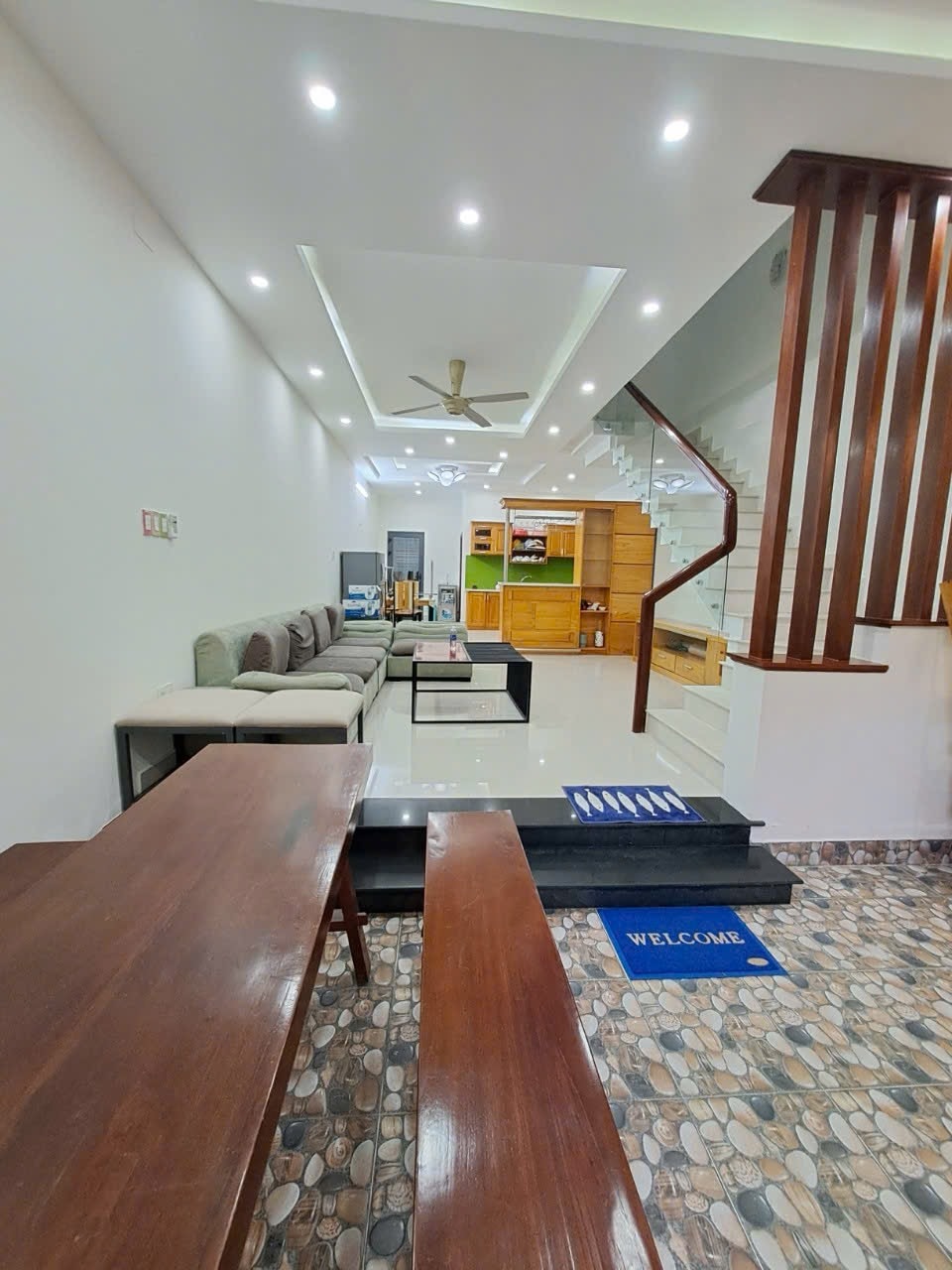 - Air conditioning in 4 BRs and living room - Free public swimming pool, very few people use it - Plenty of free towels - Showerheads with filter - Supermarket, BÚN CHẢ + PHỞ restaurant, restaurant, cafe...1-12min walk 👉 .3-storey house (360m2): 1/ Ground floor: Yard + living room with air conditioning + kitchen + dining table +WC 2/ First floor: 2 spacious bedrooms with WC + reading room with massage chair 3/ Second floor: 2 bedrooms with WC + laundry and drying room+ mini gym 4/ Rooftop: BBQ