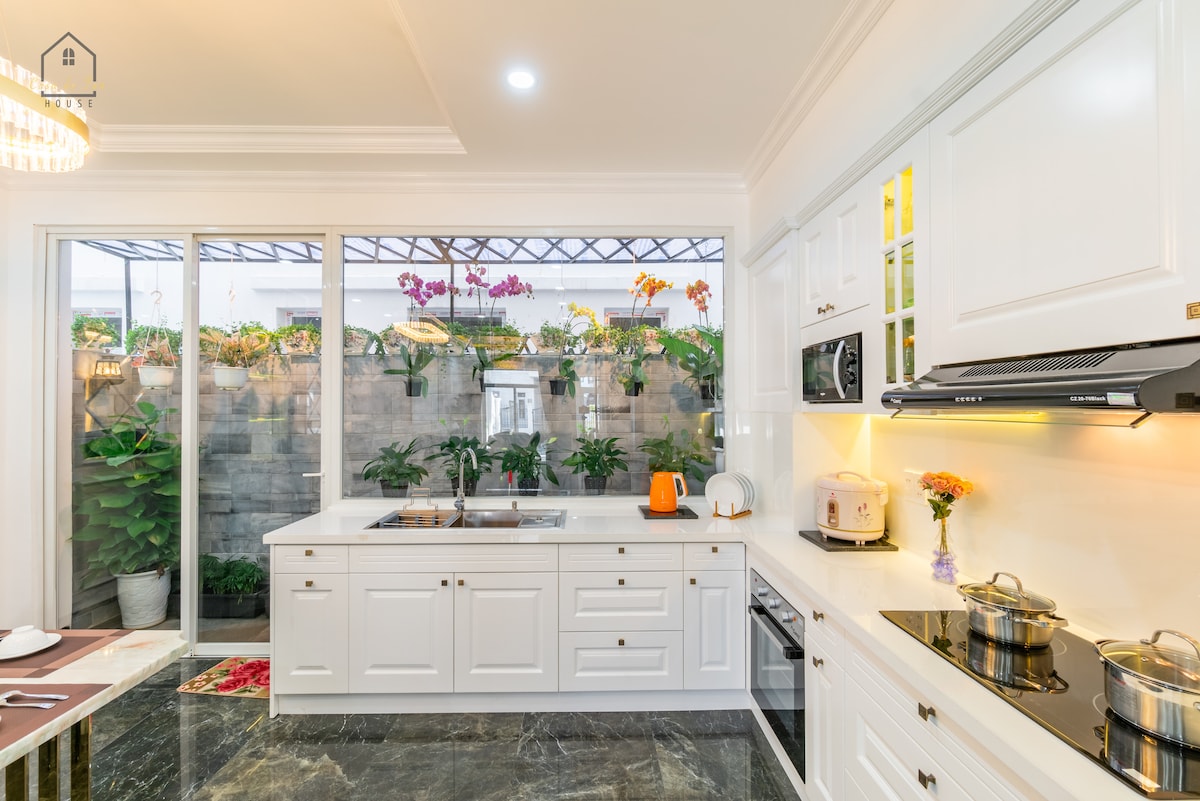 - Air conditioning in 4 BRs and living room - Free public swimming pool, very few people use it - Plenty of free towels - Showerheads with filter - Supermarket, restaurant, cafe...1-5min walk - There is no elevator. 👉 .3-storey house (360m2): 1/ Ground floor: Yard + living room with air conditioning + kitchen + dining table +WC 2/ First floor: 2 spacious bedrooms with WC + reading room with massage chair 3/ Second floor: 2 bedrooms with WC + laundry and drying room+ mini gym 4/ Rooftop: BBQ