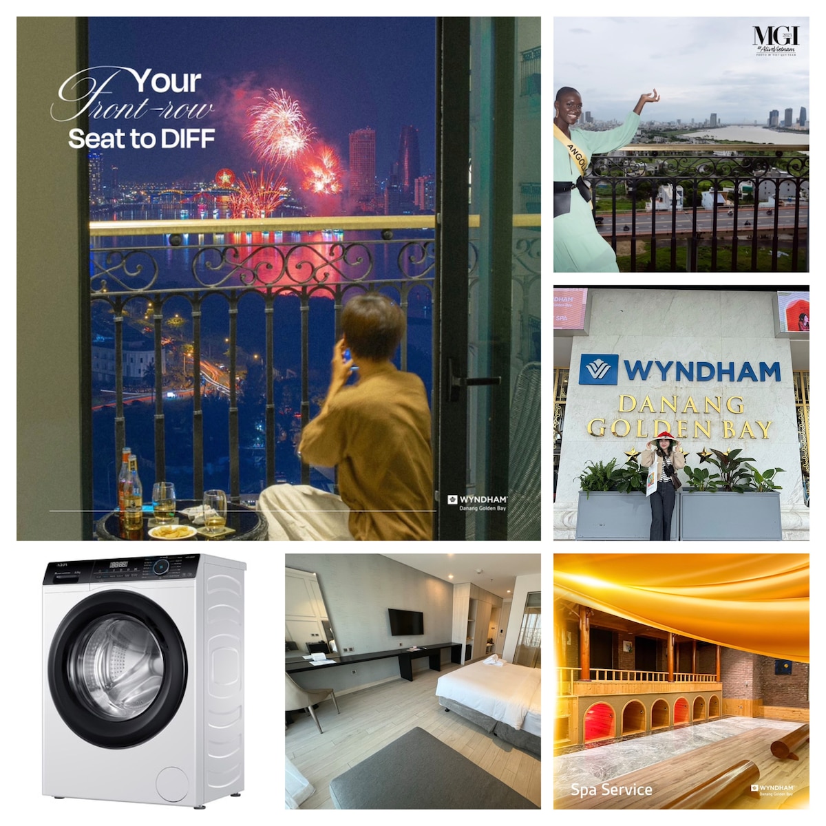 In luxury Wyndham Golden Bay building with amazing gold infinity swimming pool on rooftop. On high floor; Full kitchen; Bathroom with bathtub; Flexible partition between kitchen and living rooms. Chill Balcony with panorama view over Danang bay, Haivan pass, Bana hill, Han river, firework and city center. Stunning sunset views.