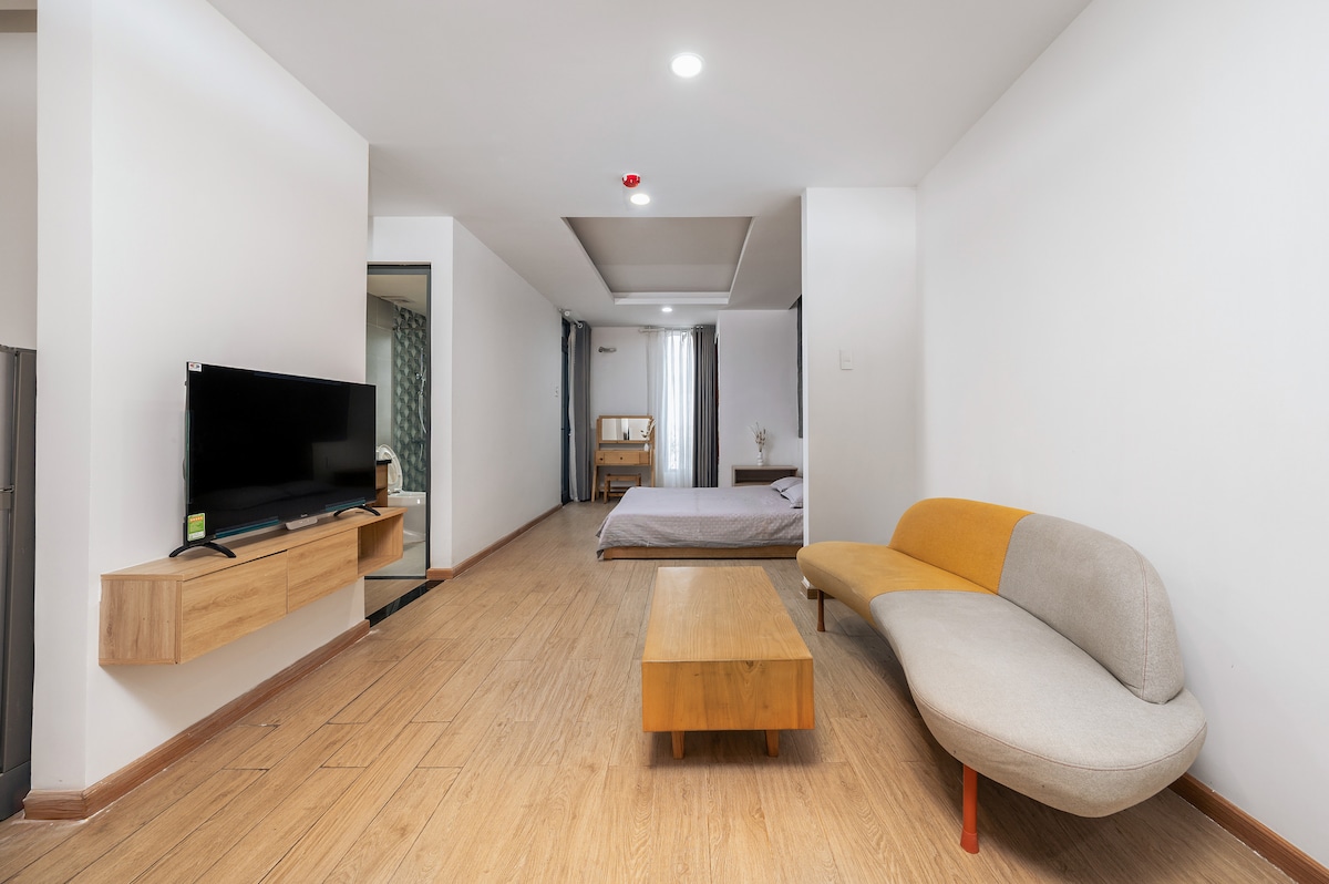 Located right in the heart of Da Nang yet tucked away in a quiet alley, our cozy two-bedroom studio is perfect for families or groups of 4–6 guests. Just steps from the scenic Han River, only 1 minute to Han Market with famous local eateries, restaurants, and cafés within walking distance, and just 10 minutes to the beautiful beaches of Da Nang. Fully equipped and warmly designed, it offers the ideal balance of central convenience and peaceful comfort for your stay.