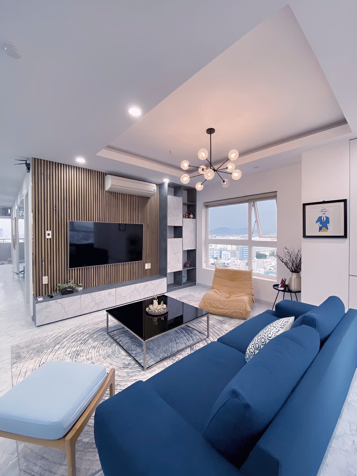 100 m² | Corner Unit | 3 BR (4 Beds) Steps to Han Market & Da Nang Museum Smoking allowed on balcony Modern, spacious 3BR condo ideal for families & groups. Enjoy cozy nights with a 65" internet TV, soft carpet, comfy couch, and premium beds. In Da Nang’s heart—walk to Cộng cafe, Han river, Pink Church, Phở Hồng and local eats. Large penthouse windows showcase river, mountain, bay & city views.