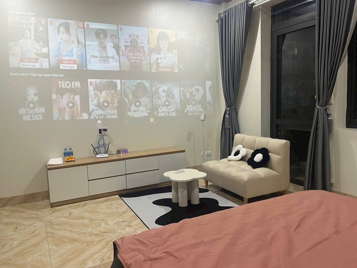 Check in - out linh hoạt. - Khách tự sử dụng mật khẩu để vào nhà như nhà mình. - Không gian thoáng đãng, có bancone. - Netflix, điều hoà, máy giặt. - Tủ lạnh, bếp ăn đầy đủ dụng cụ và gia vị. - Bồn tắm sang chảnh.