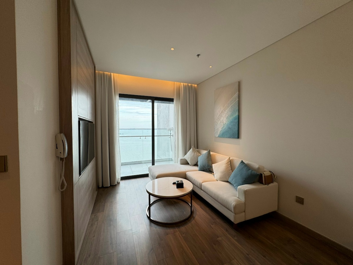 Modern, cozy studio just 100m from the beach! Enjoy a spacious king-size bed (1.8×2m), comfy sofa, and extra bed option — great for couples or families. Relax at two swimming pools: an outdoor pool on the 3rd floor with an ocean view and an indoor pool on the 30th floor. Wake up to sea breeze, walk to the sand in minutes, and explore local shops and restaurants nearby. Perfect for a peaceful seaside escape with family or friends. Book your stay and make beautiful memories!