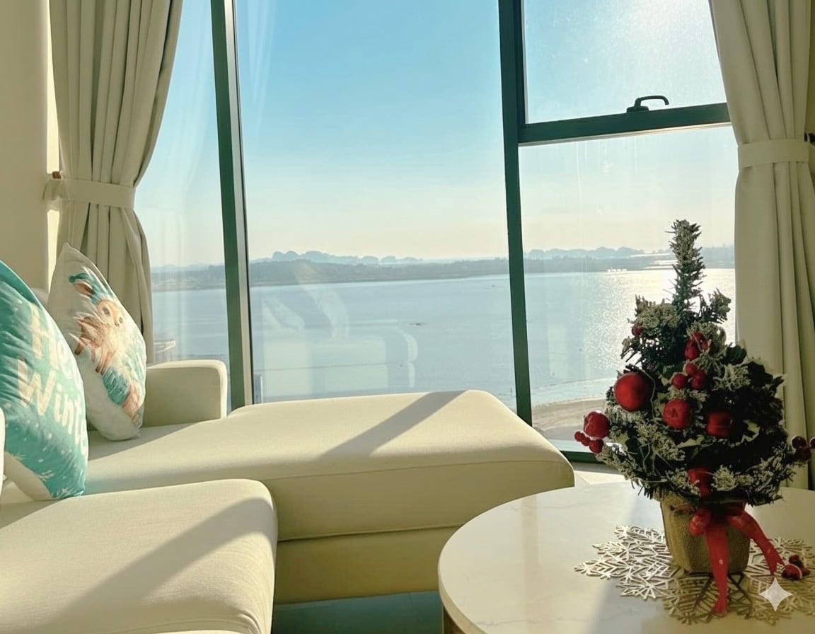 Luxury apartment à la carte Ha Long - the highest 41 floor building in Ha Long, the apartment on the 32nd floor has 2 bedrooms and a living room with glass ocean views, at the foot of the building is a white sand beach, 5-stars standard room facilities are fragrant and clean, suitable for families with young children or groups of friends who want to have a common space when traveling but still need a private, closed bedroom, especially when traveling. Watch the sea 24/24 even lying on your bed