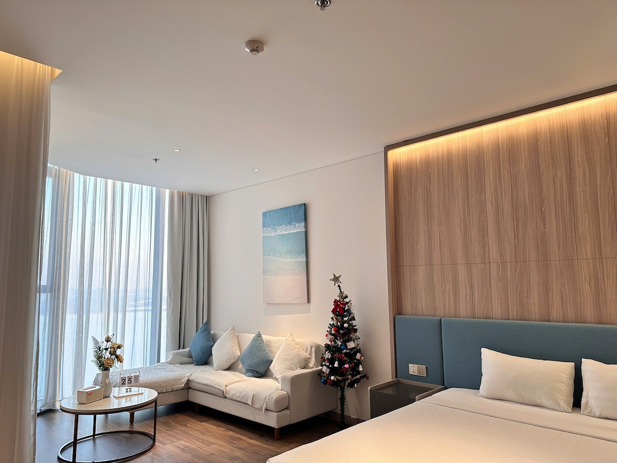 Located next to InterContinental Halong Bay Resort, this 45 SQM fully furnished Studio with breathtaking seaview of Ha Long Bay from the high floor. It's very convenient with full services for relaxing & entertainment & food at exclusive rate for guests staying here and perfectly on the beautiful beach. 🏊♂️Please note that room rate does not include pool, jacuzzi, gym, spa & breakfast which are managed by the 5* à la carte hotel. You can buy tickets at the reception at the resident rate.