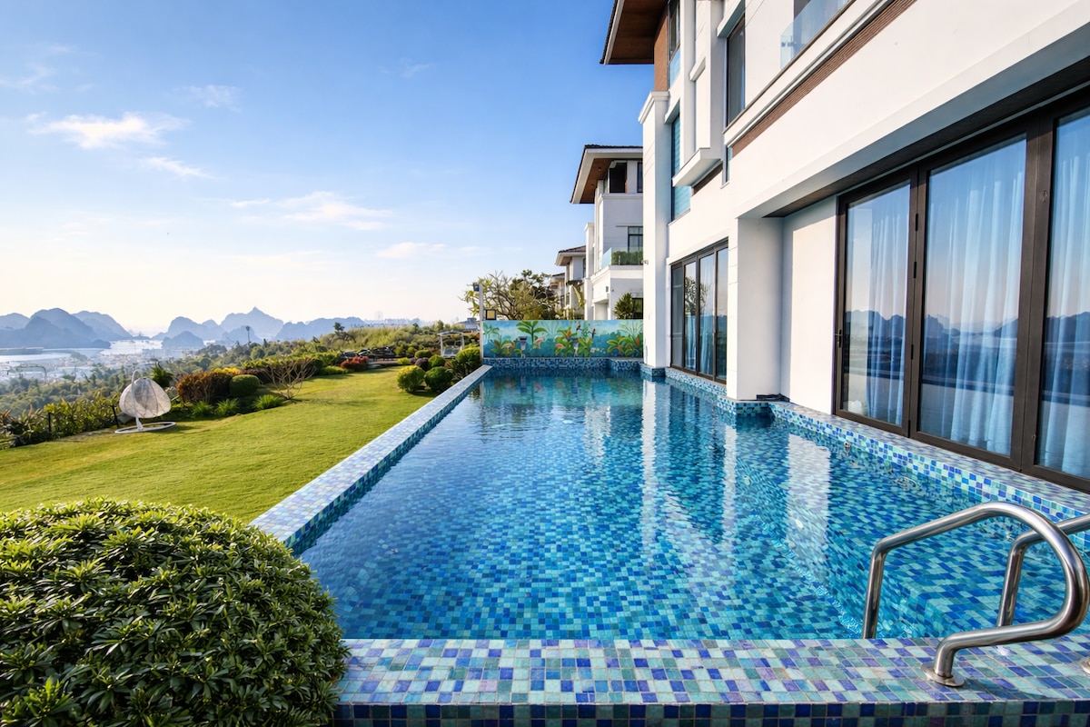 Biệt Thự 500M2 thiết kế phong cách Indochine, có 5 Phòng Ngủ Master, Hướng Vịnh , có phòng hát karaoke, có bàn bida , bi lắc. Chiêm ngưỡng trọn vẹn vẻ đẹp của Vịnh Hạ Long từ căn biệt thự nằm trên ngọn đồi cao 100m so với mực nước biển . Bạn có thể thỏa sức ngắm nhìn & tận hưởng kỳ quan thế giới theo cách của riêng mình