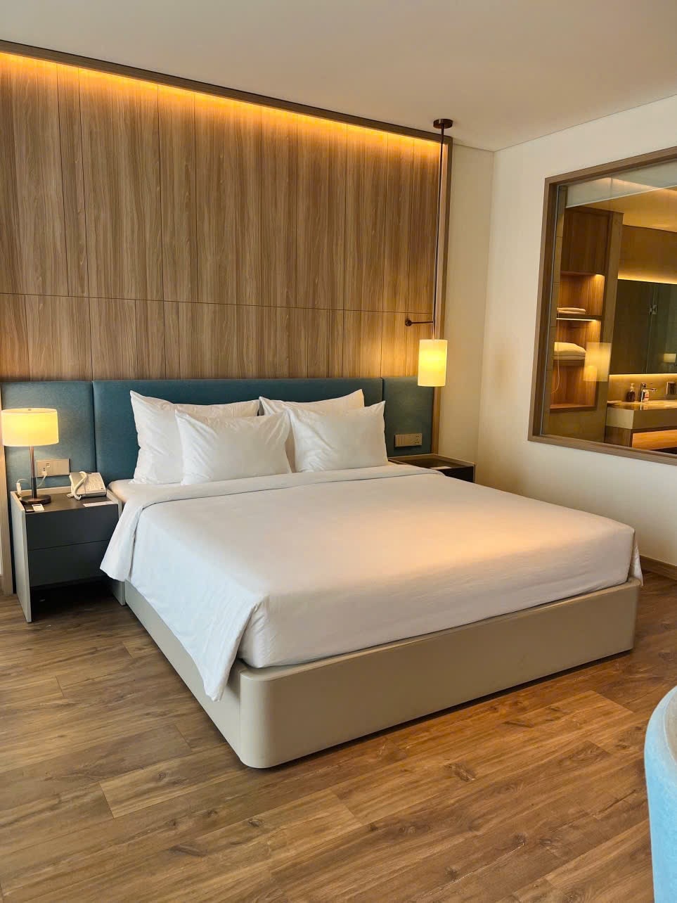 Wake up to the stunning beauty of Cat Ba Island in The Emerald Home – a beach front private-owned studio apartment situated in Flamingo Cat Ba Beach Resort with balcony offering panoramic views of lush mountains and sparkling sea. Ideal for families, couples, solo travelers, or anyone seeking peace and inspiration in nature’s splendor. *One king-size bed can be split into two single beds.