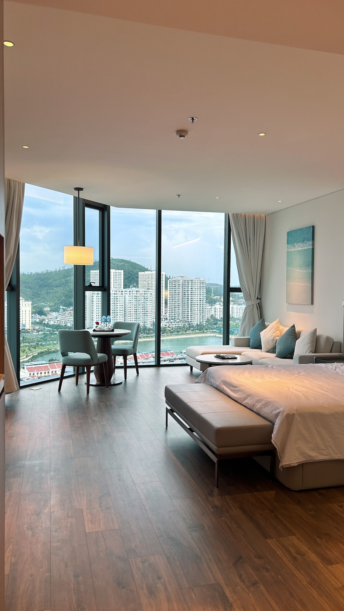 Located next to InterContinental Halong Bay Resort, this 45 SQM fully furnished Studio with breathtaking seaview of Ha Long Bay from the high floor. It's very convenient with full services for relaxing & entertainment & food at exclusive rate for guests staying here and perfectly on the beautiful beach. 🏊♂️Please note that room rate does not include pool, jacuzzi, gym, spa & breakfast which are managed by the 5* à la hotel. You can buy tickets at the reception at the resident rate.