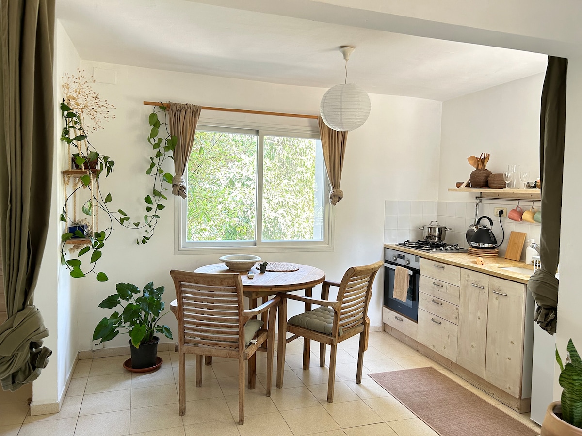 In a magical big garden full of fruit trees and herbs. Home to my parents, artists that will happily show their wonderful work and studios. A perfect location for private car or public transport, 15 min walk from Pardes Hana Train Station (40 min from Tel aviv). 10 min lovely walk through woods to city center. 15 min drive to the beautiful nature around and historical sites (Cesarea ruins and Aqueduct beach, the hills and stream of Amikam and Mount Carmel) Plenty of fun things to do around.
