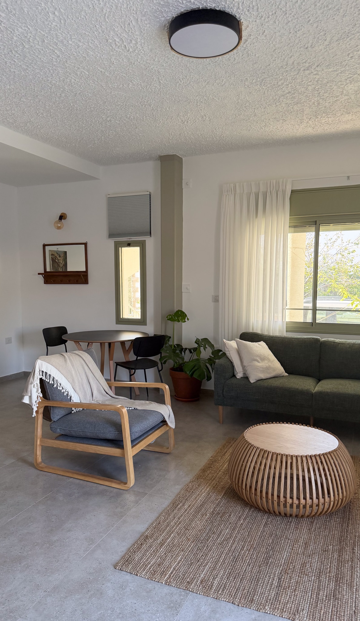 הדירה נמצאת בקומת הקרקע של Dar Dalya, עולים את מדרגות הבטון החשוף בין אדניות הפרחים והצמחים, נכנסים לדירה ומתקבלים על ידי חלל פתוח של סלון ומטבח עם עציצים בכל פינה, בתקרה שחזרנו את הטיח המקורי של הבית, סגנון מערת הנטיפים היה להיט בשנות ה70 אך אל דאגה נתנו לה טאץ' מודרני קצת , חדר שינה מרווח עם מפתחים גדולים המכנסים אור רך ונעים, לדירה הזאת יש חניה צמודה והיא אך ורק שלכם, חדר רחצה רחב ידיים, עם חלון גדול המכניס אור יום, תהנו משינה ערבה על המזרון המפנק, נתראה בבוקר ונתעורר לניחוחות הקפה.