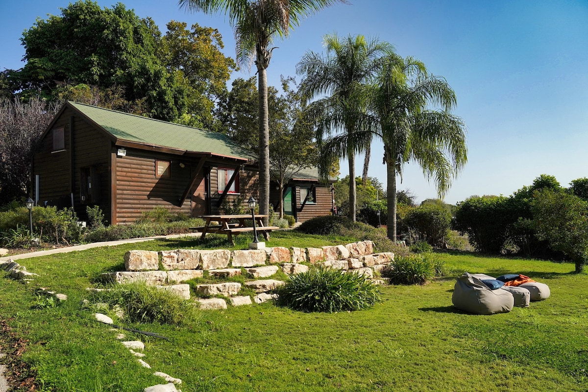 Our countryside guesthouse is situated in a farm , overlooks the beautiful Jezreel Valley, located at the foothills of Mount Carmel and surrounded by the lush forests of Menashe Park. Enjoy breathtaking scenery, hiking trails and walking paths. Our guesthouse offers you shadowy corners and fruits from our orchard. Public transportation is available,,just an hour away from Tel Aviv and a perfect gateway to explore the Galilee. Swimming pool(free access to our guests - in the Season), Kosher restaurant, Supermarket and Synagogue within 5 minutes walking. A vacation in the Log Cabin is a unique experience for couples and families alike. It has a bedroom, a well-equipped living room, which includes a dining area and a kitchen. It has a washroom with a circular Jacuzzi. One can sit & relax on the wooden deck and enjoy the silence and the fruit this around. What else can be found in Yokneam and its vicinity? Wilfried art museum Shopping center Hazorea forest - active vacationing Nahal Hashofet Carmel park Antiquities in Megido, Bet-shearim and Zipory Menashe forests trails A fishing park + fish for sale Playground Children`s Morad winery Yoshra - Quality olive oil makers Sculpture garden Wood work gallery An ironsmith Art galleries In the village Synagogue Mini market within 5 min walk Free entrance to the swimming pool "Tanduka" meat restaurant החופשה בבקתה היא חוויה של ממש לזוגות ולמשפחות. חדר שינה, סלון מאובזר המשלב פינת אוכל ומטבח. חדר רחצה ואמבטיית ג'קוזי עגולה. במרפסת העץ תוכלו לשבת ולהירגע, ליהנות מהשקט ומעצי הפרי המקיפים את הבקתה.