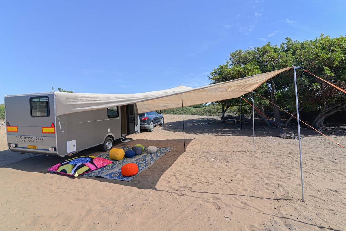 Rv in a horse ranch situated 10 min walk from the Mediterranean Sea one of the remarkable beaches in Israel Between the village Mikhmoret and the neighborhood Ein hayam At the moment you getting into the sand road you feel like in your own bubble, in one hand far away from civilization and in the other close to the center of Israel About the Rv