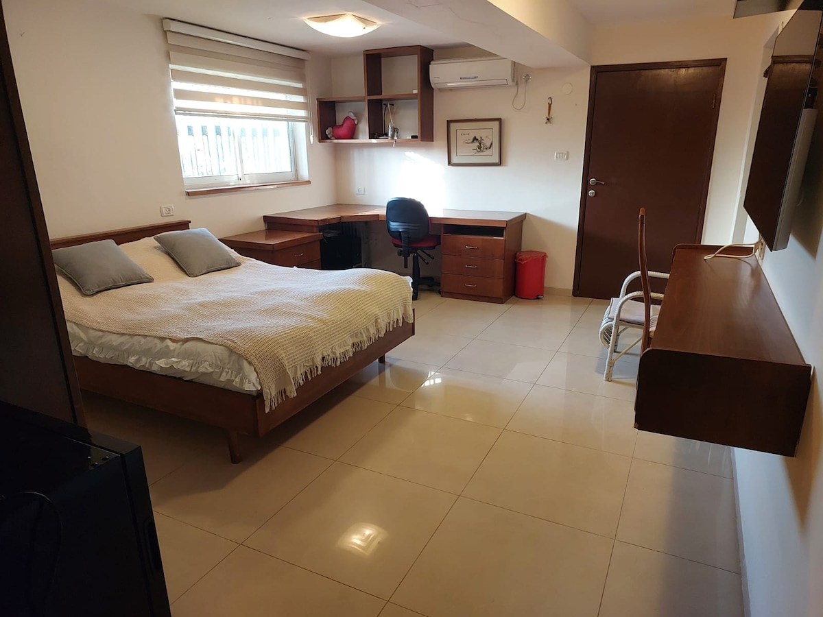 סטודיו מרווח ומואר ששופץ מהיסוד, עם כניסה פרטית וגינה לשימושכם הבלעדי - במפלס נפרד, מוצל תחת עצי הדר (ירידה ליחידה במדרגות) ביחידה תיהנו ממטבחון מאובזר (מקרר, מיקרוגל, כירה חשמלית, קומקום, מכונת קפה, כלי אוכל וכלי בישול), אי מטבח לישיבה מרווחת, פינת ישיבה עם טלוויזיה חכמה מסתובבת 360, מיטה זוגית נוחה וחדר רחצה פרטי. המיקום נהדר – כ־5 דק׳ הליכה מבית קפה מקסים, סופר 24/7 ותחבורה ציבורית. מרכז הכרמל נמצא במרחק של 10–12 דק׳ הליכה נעימה. מתאים למי שמחפש שקט, ירוק ונוחות בלב העיר. חניה חינם ברחוב
