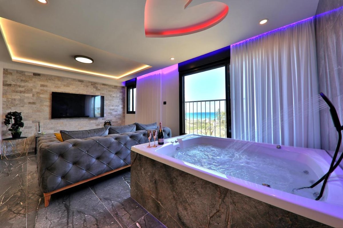 海上日落 - 完美的情侣公寓,配备面向大海的按摩浴缸