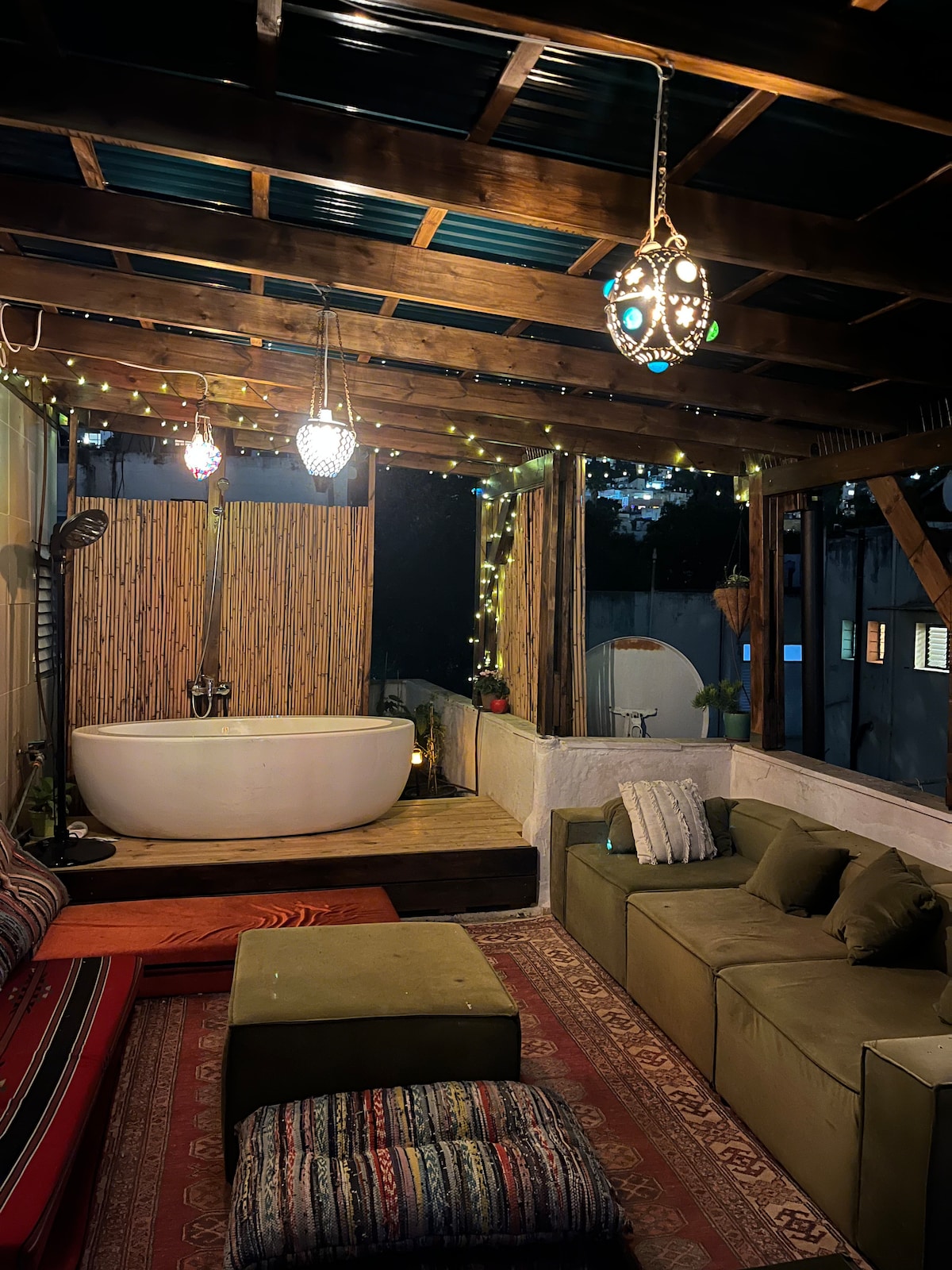 屋顶海景,配有神奇的浴缸