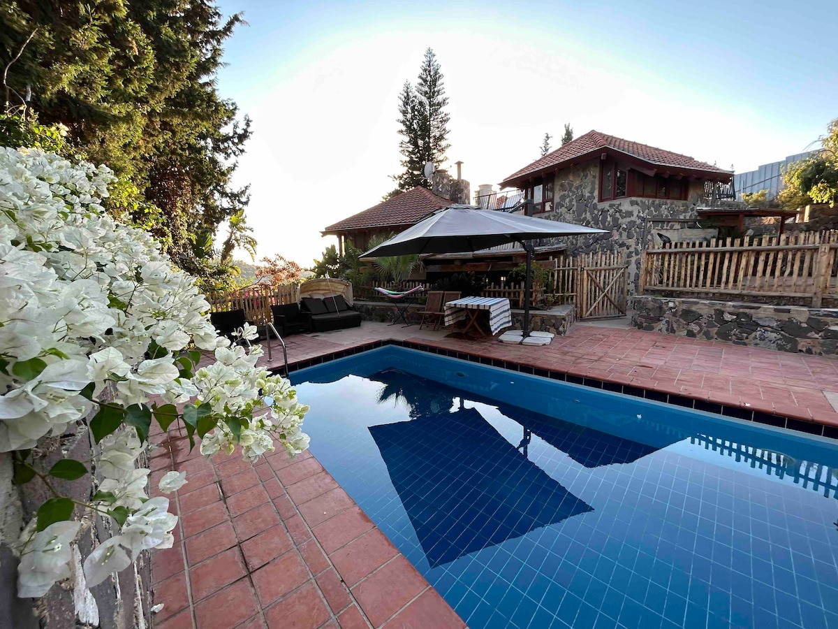 Village stone cottage with pool by the sea