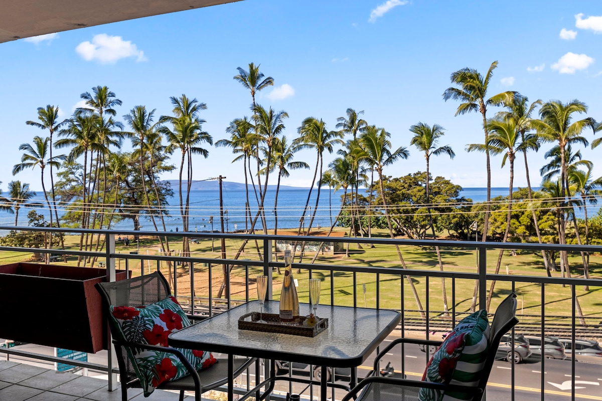 Bask in the breathtaking ocean views from our Maui penthouse! Centrally located, our beautifully remodeled suite offers full beachfront, ocean and pool access. The master bedroom features an incredibly comfortable California king bed with an en suite bathroom and stone walk-in shower. There is also a king size cozy sleeper sofa in the living room which has direct access to the second full bathroom. The modern kitchen is fully equipped with everything you need!