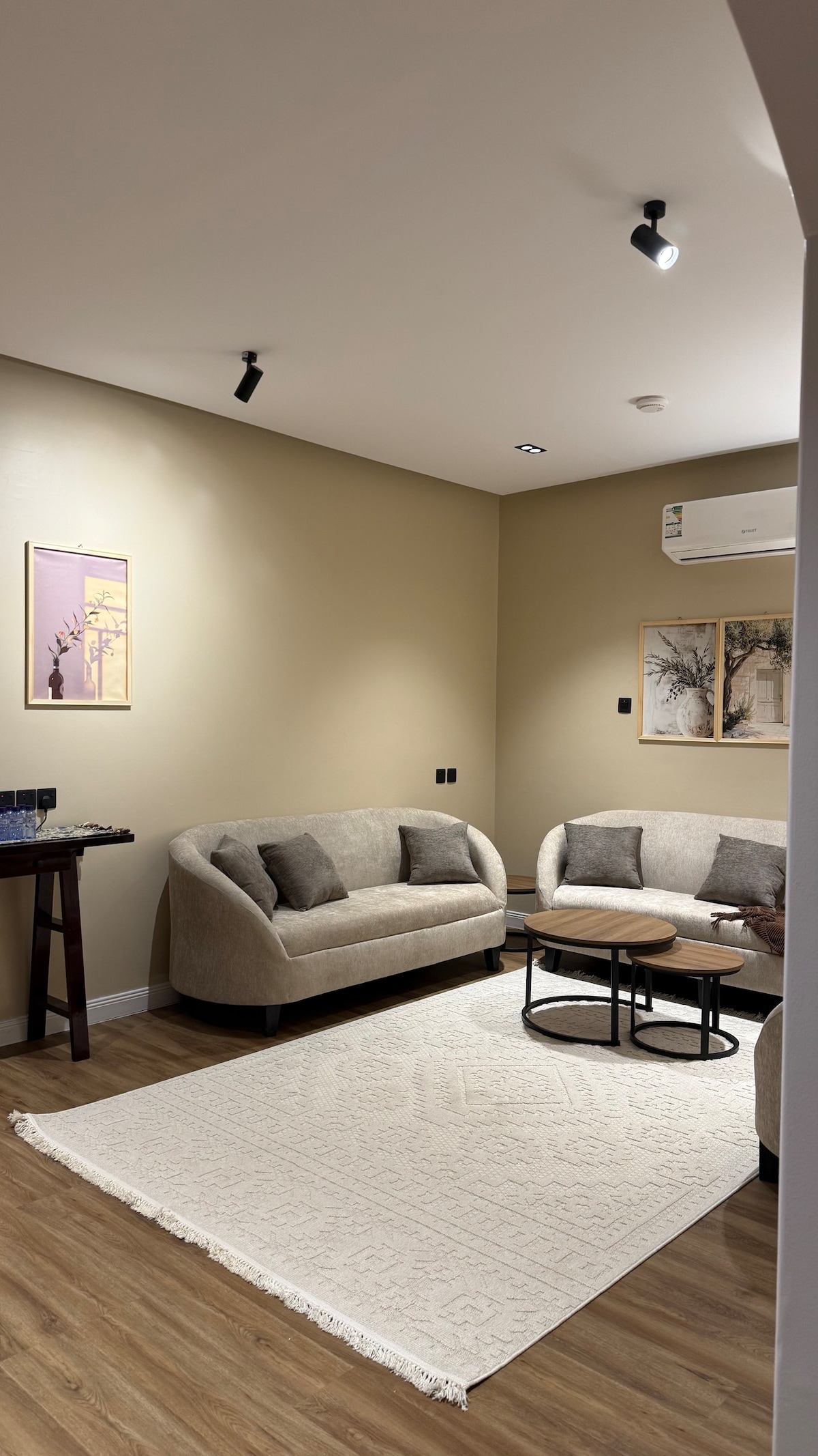 استمتع بتصاميم الشقة المميزة والتي تتكون من غرفة نوم بسرير ماستر وصالة جانبية ، صممت بعناية فائقة وبكل حب للتناسب مع تطلعات ضيوفنا الكرام ، وفرنا لك الانترنت بسرعة 5G للاستمتاع بمشاهدة فلمك المفضل على شاشة تلفاز 65 بوصة ، وتقع على بعد 10 دقائق من المطار وعلى بعد 4 دقائق من العثيم مول ، كما يمكنك قضاء وقتاً ممتعاً بحديقة الكورنيش الغربي والتي تبعد 5 دقائق سيراً على الأقدام