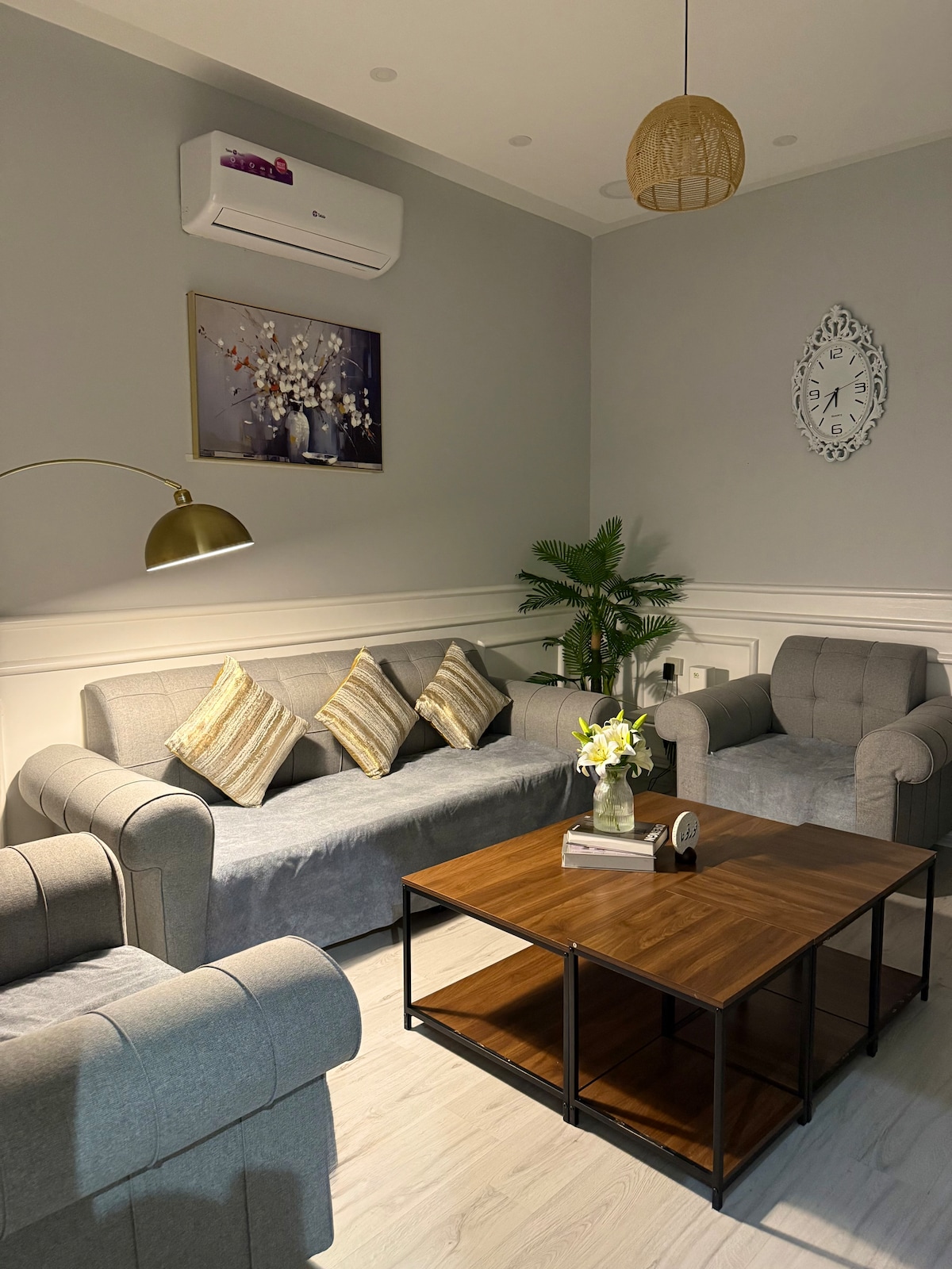شقة راقية في موقع مميز بحي الفايزية في القصيم، تبعد 20 دقيقة فقط عن المطار و5 دقائق عن النخيل مول، وقريبة من جميع الخدمات والمطاعم والمحلات. تتميز الشقه بتصميم عصري وديكور أنيق، تضم غرفة نوم خاصة وصالة فسيحة بأثاث مريح وتلفزيون بشاشة كبيرة. تتوفر خدمة واي فاي سريعة، ومواقف خاصة للسيارات، ومدخل فاخر بمستوى فنادق 5 نجوم. كما تضم مطبخ صغير لتحضير القهوة والوجبات الخفيفة، مع جلسة مريحة وإضاءة دافئة. الخيار الأمثل للإقامات القصيرة أو الطويلة، وتجمع بين الراحة، الخصوصية، والموقع المثالي.
