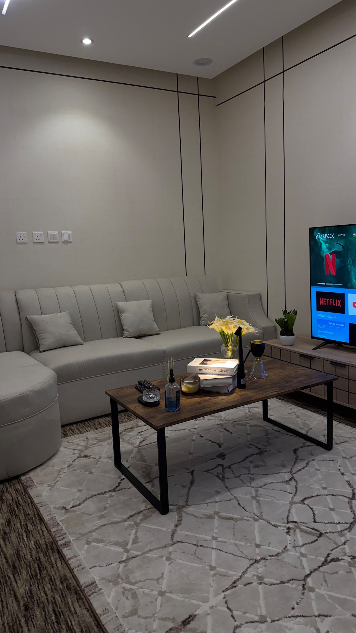 شقة فندقية أنيقة بتصميم عصري وديكور راقي، تقع في موقع مركزي على الدائري بمدينة حائل. تتميز بصالة واسعة مزودة بكنب فاخر يضيف لمسة راحة وأناقة استثنائية مع شاشة كبيرة متصلة بجميع برامج المشاهدة ، غرفة نوم مريحة بسرير فاخر وتصميم مميز، وحمام حديث مجهز بجميع المستلزمات الأساسية. يوجد مطبخ عملي يحتوي على ميكروويف، غلاية، ماكينة قهوة، أدوات تحضير v60 وثلاجة صغيرة لتلبية جميع احتياجاتك. نوفر لك إنترنت سريع، نظافة عالية، وأجواء هادئة تمنحك إقامة مميزة سواء لرحلة عمل أو عطلة قصيرة