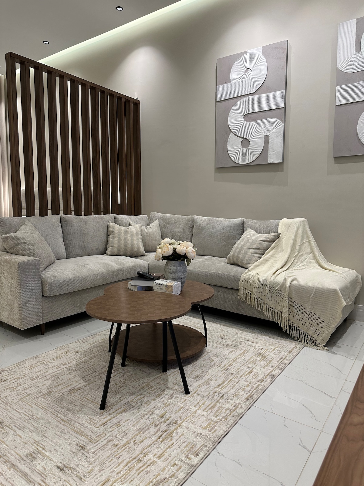 شقه فخمة بمدخل مستقل ودخول ذاتي على بعد دقيقه واحده من العثيم مول تحتوي على غرفتين نوم وحدة منهم ماستر وثلاثة دورات مياه ومطبخ صممت هذة الشقة لتوفر لك الراحة و الفخامة والخصوصية التامة وتبعد عن المطار 10 دقائق وبالقرب من جميع الخدمات الرئيسية والمطاعم والكافيهات المشهورة وتحتوي الشقة أيضاً على شاشة تلفزيون 75 بوصة ركن قهوة انترنت أدوات عناية شخصية ومجفف شعر ونتمنى لكم إقامة سعيدة