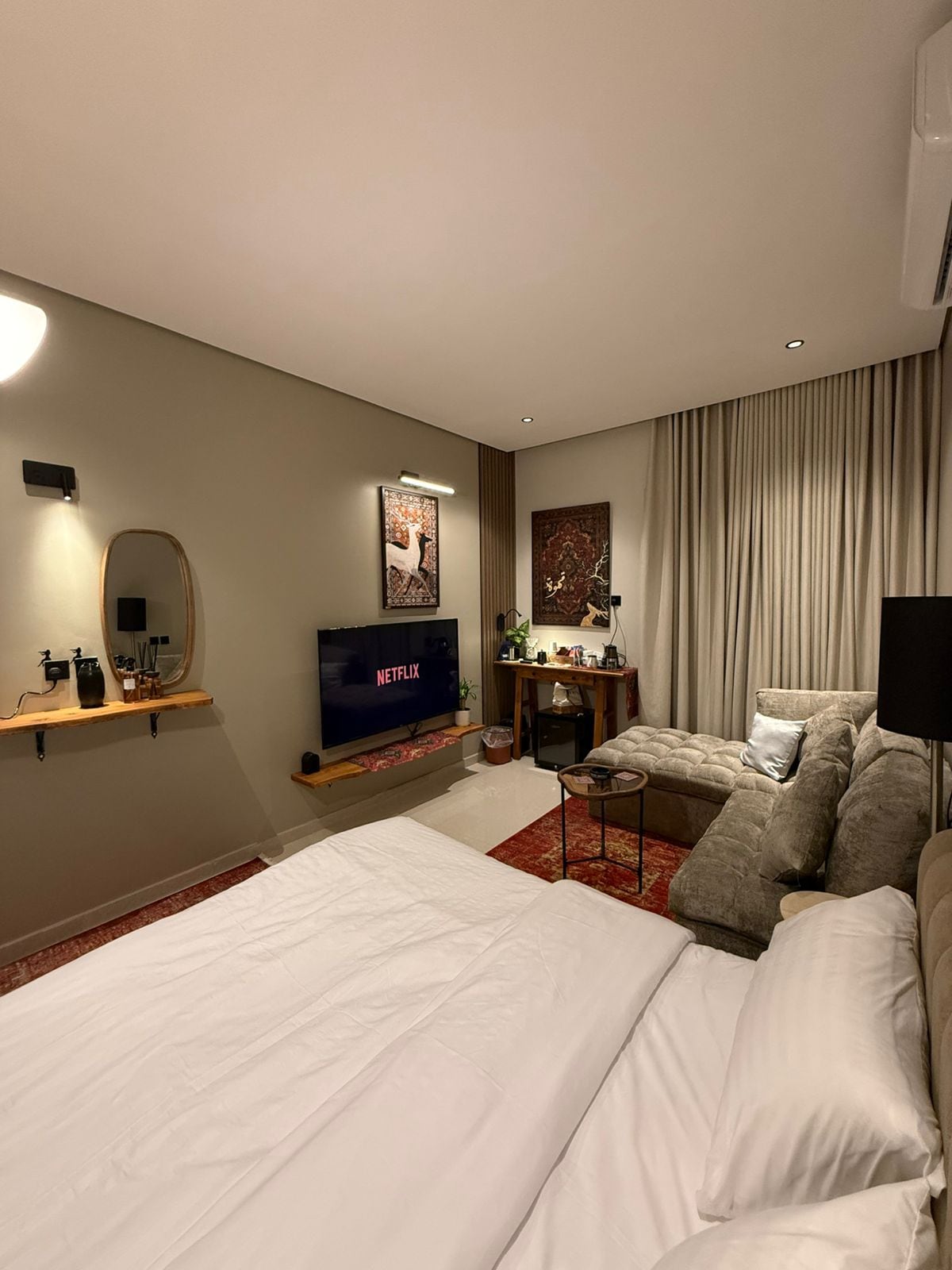 تتميز بتصميم فريد يضمن الراحة والرفاهية ، بأثاث فندقي ، تضم غرفة نوم رئيسية بحمام خاص الموقع حي الفجر حيث يبعد المطار 10 دقائق ومحطة القطار (سار) 15 دقيقة وسط حائل 10 دقائق ومطل حاتم الطائي 15 دقيقة بالقرب منها قرية عقدة وسلسلة جبال أجا المكان المتنفس لأهالي حائل وزوارها، وبالقرب منها شارع محمد العريفي والامير سعود بن عبدالمحسن لما يحتويه من مطاعم وكافيهات حديثة ، وبجوارها حديقة صبابة وكافيه الأدهم وكافيه جيشا وكافيه غمره وغيرها