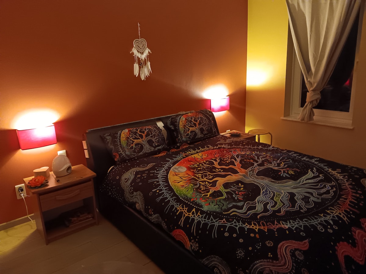 Beautiful home in a green and peaceful environment. Enjoy the fully equipped kitchen, the U-shaped living room, the garden and little forest with a zip-line cable and swings! Two large bedrooms and two small one in a lovely house. Brussels is a few steps away. The house goes from 200 to 110€ because the future wooden floor of the living room is stored on the ground in the dining room. The living room, the dining room, the kitchen form a single "L" shaped room. So you will see the stored wood.