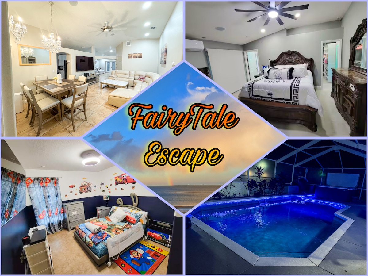 The whole family will have fun in our Magical Disney Home where the Magic of Mickey Mouse,Toy Story, Frozen and Minion bedrooms with Sensor Songs when you walk in each room, uv and Led lights.Color changing Led lights in pool + bbq area, loungers for sun tanning.This Villa has Disney Hand UV light Painted by a local artist and a Game room with air hockey arcade, your children will feel the Magic as soon as they walk in the home, from smell to sound to sight This is it!Your Magical Dream Vacation