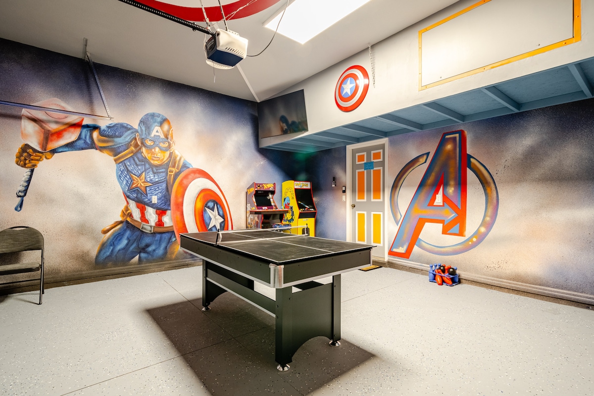 迪士尼主题房源,配备游戏室和私人热水浴缸!