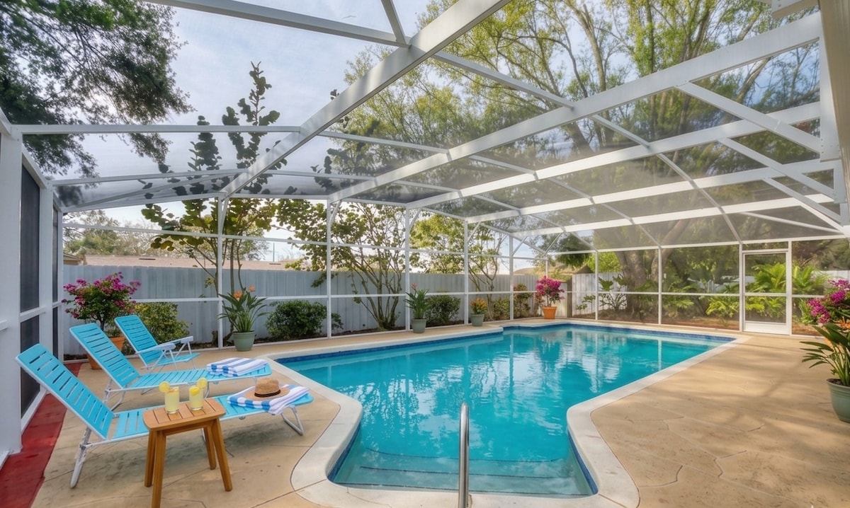 宽敞的4卧室度假屋,带加热泳池!靠近公园!
