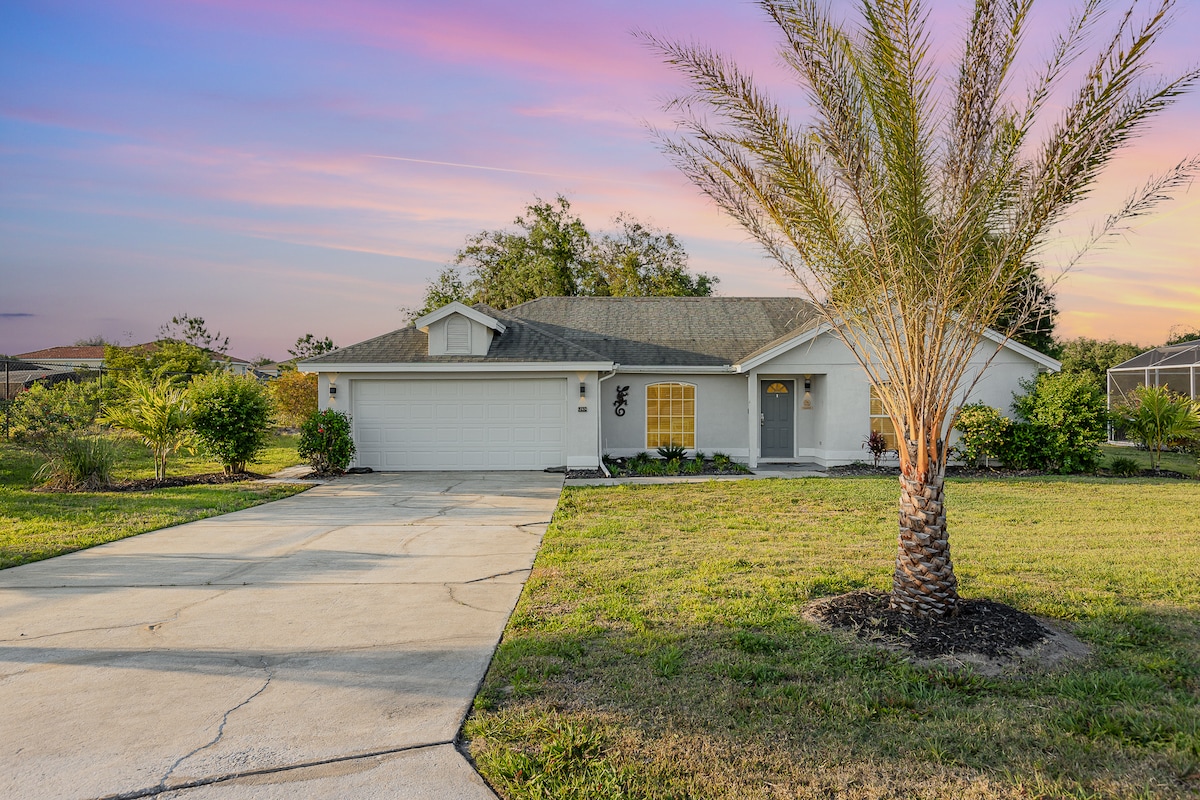 Brand new, single family home with free parking. 4 Bed/2 Bath updated home with a large screened sun room. We made this home family-friendly because as parents ourselves, we know how nice that is! We even provided a baby crib. This home is light, breezy, comfortable, newly furnished and decorated; centered around a minimalistic vibe. Fully equipped, washer and dryer. Internet WiFi included. Close to Legoland (9 mi.), Disney (29 mi.), Golfing (6 mi.), and surrounded by beautiful lakes.