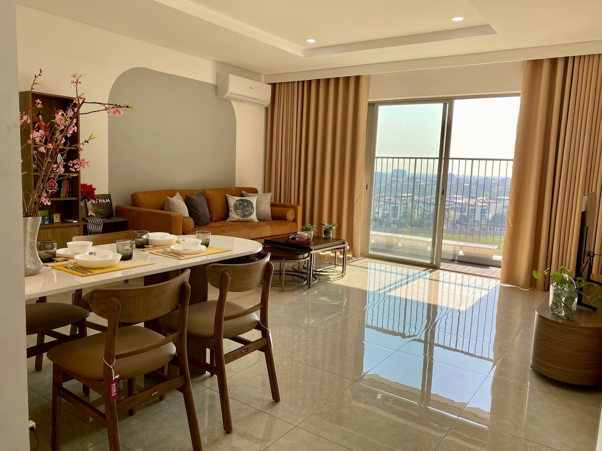 Căn hộ 2 phòng ngủ, 2 vệ sinh hiện đại, đầy đủ nội thất – không gian ấm cúng và tiện nghi ngay trung tâm thành phố. Phòng khách thoáng đãng nối liền ban công, bếp đầy đủ dụng cụ để bạn thoải mái nấu ăn. Phòng ngủ trang bị giường nệm êm ái, chăn ga sạch sẽ; vệ sinh riêng hiện đại, tiện lợi cho gia đình hoặc nhóm bạn. Vị trí thuận tiện, gần điểm tham quan, ăn uống và mua sắm. Nơi dừng chân lý tưởng cho kỳ nghỉ hay chuyến công tác của bạn.