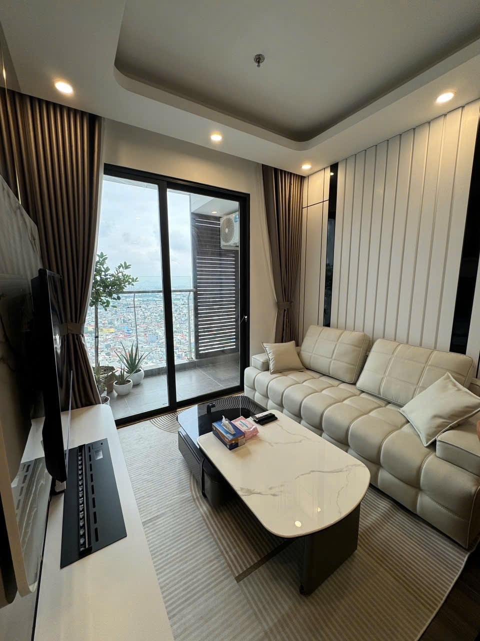 A new flat decorated with Boho Chic style positioning right on the 32nd floor of Doji Diamond Crown Tower - a new luxury tower of Hai Phong. The property comes with amazing view (you can see firework every Sat night at around 7pm) , great utilities (supermarket 2 mins away, plenty of restaurants and coffee houses around) and perfect location (15 mins from the airport).