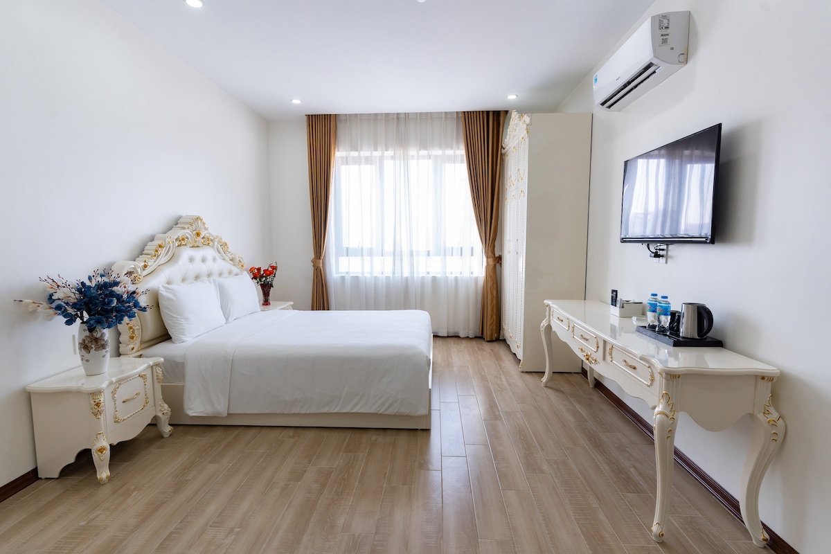 Grand Hill apartment & Hotel has 90 rooms around 30 - 38 m2/ room, some with kitchen or/ and 02 king beds located at Van Cao street in Hai Phong center, Vietnam where there are many restaurants, karaoke, mini bar, markets, shops, coffee, street foods.... and there are many Korean, Japanese citizens & other foreigners living and Creating a fun, bustling, standard, easy traffic, affordable life.