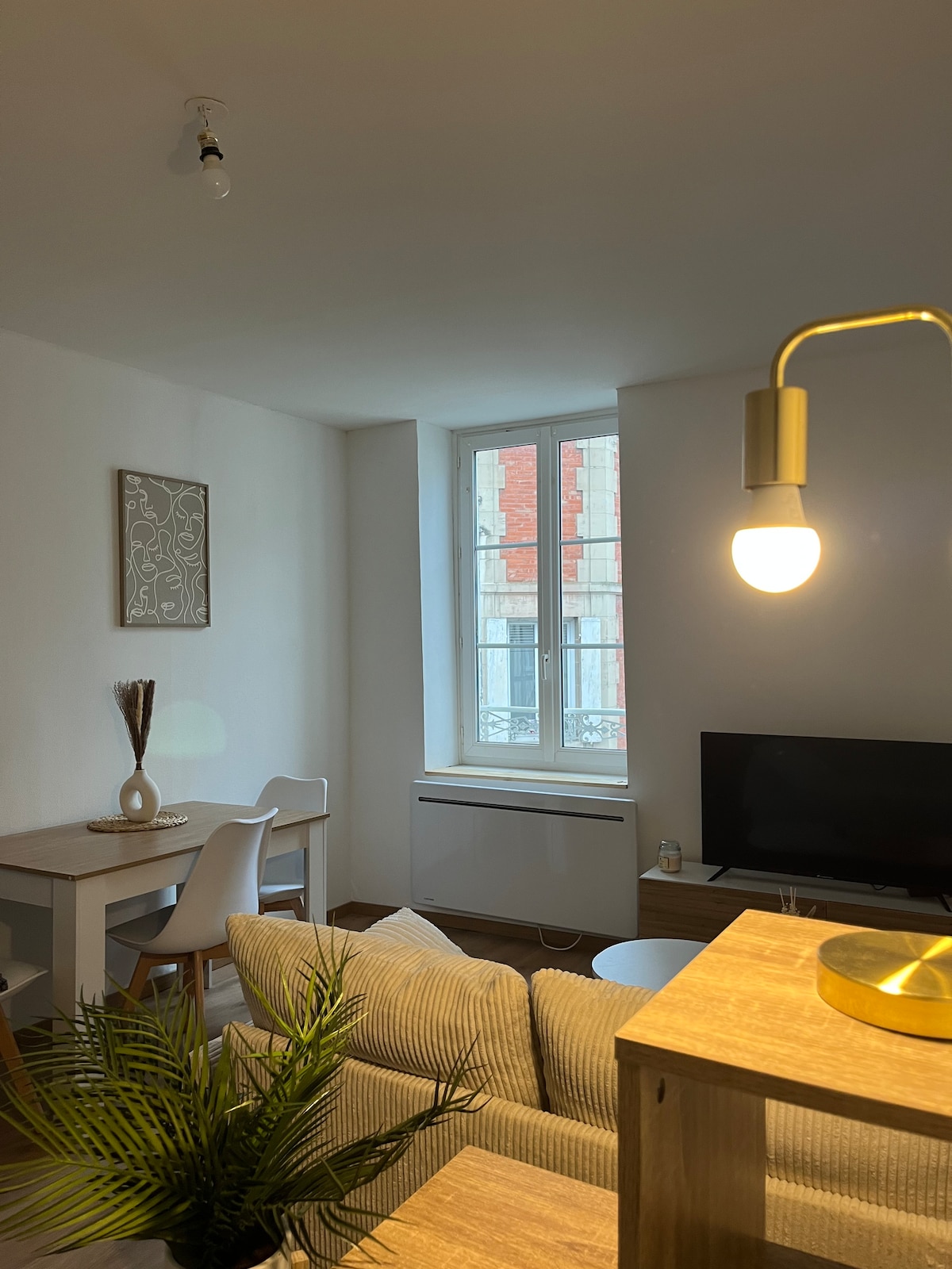 In a typical downtown building, discover a newly renovated apartment that combines modern comfort with a cozy atmosphere. 🌆 Central location: just steps from the train station and all amenities (market, bakeries, restaurants, bars, shops, supermarket, La Barroise) 🧺 Bed linen and towels provided 🔑 Self check-in with secure key box Everything has been designed for a pleasant stay, in a place where you’ll quickly feel at home.