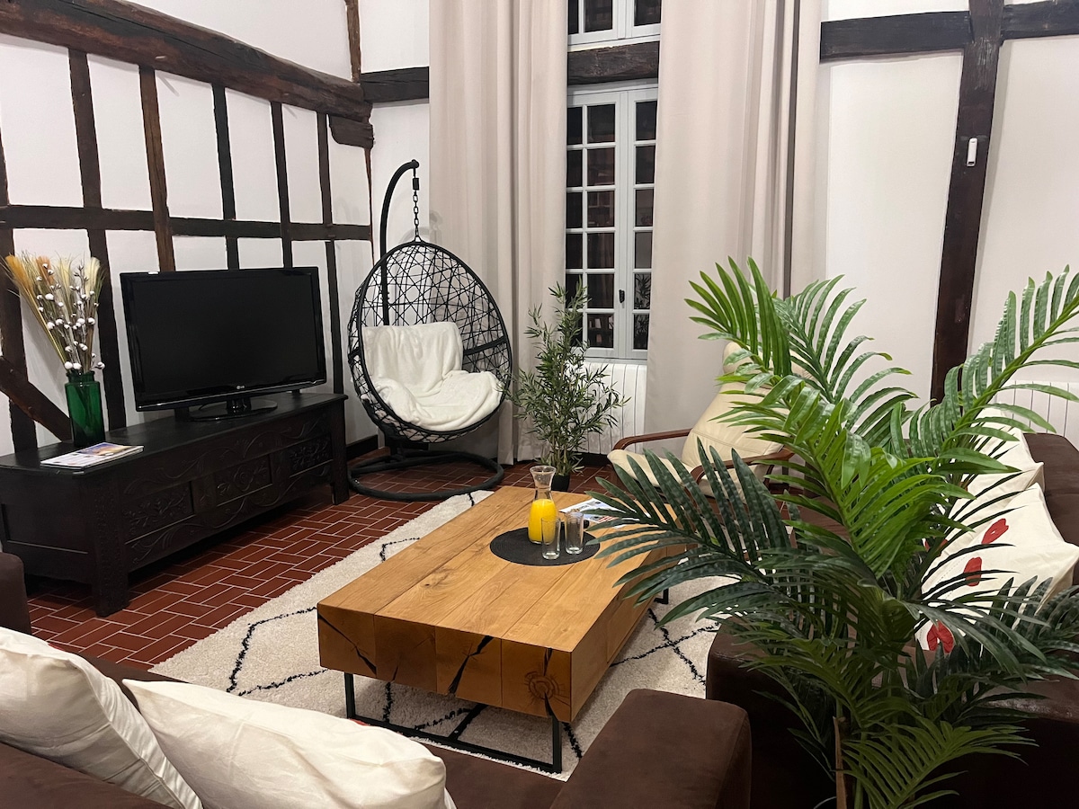 -Situé en hyper centre "En Apparte"est un meublé de tourisme classé 3 étoiles avec Sauna Infrarouge, Lit King Size et Douche hydromassante. -Sauna (Chromotherapie, Bluethooth, USB,Radio) - Lit King Size avec matelas Hybrid "EMMA" . USB, USB/c , LED intégrés - Espace de travail/Repas avec table amovible. -Espace Petit-déj/Cuisine Frigo, Four/Micro-onde , cafetière "L'or", Bouilloire, plaque -Smart TV connectée -Film sans tain aux fenêtres -Logement non fumeur