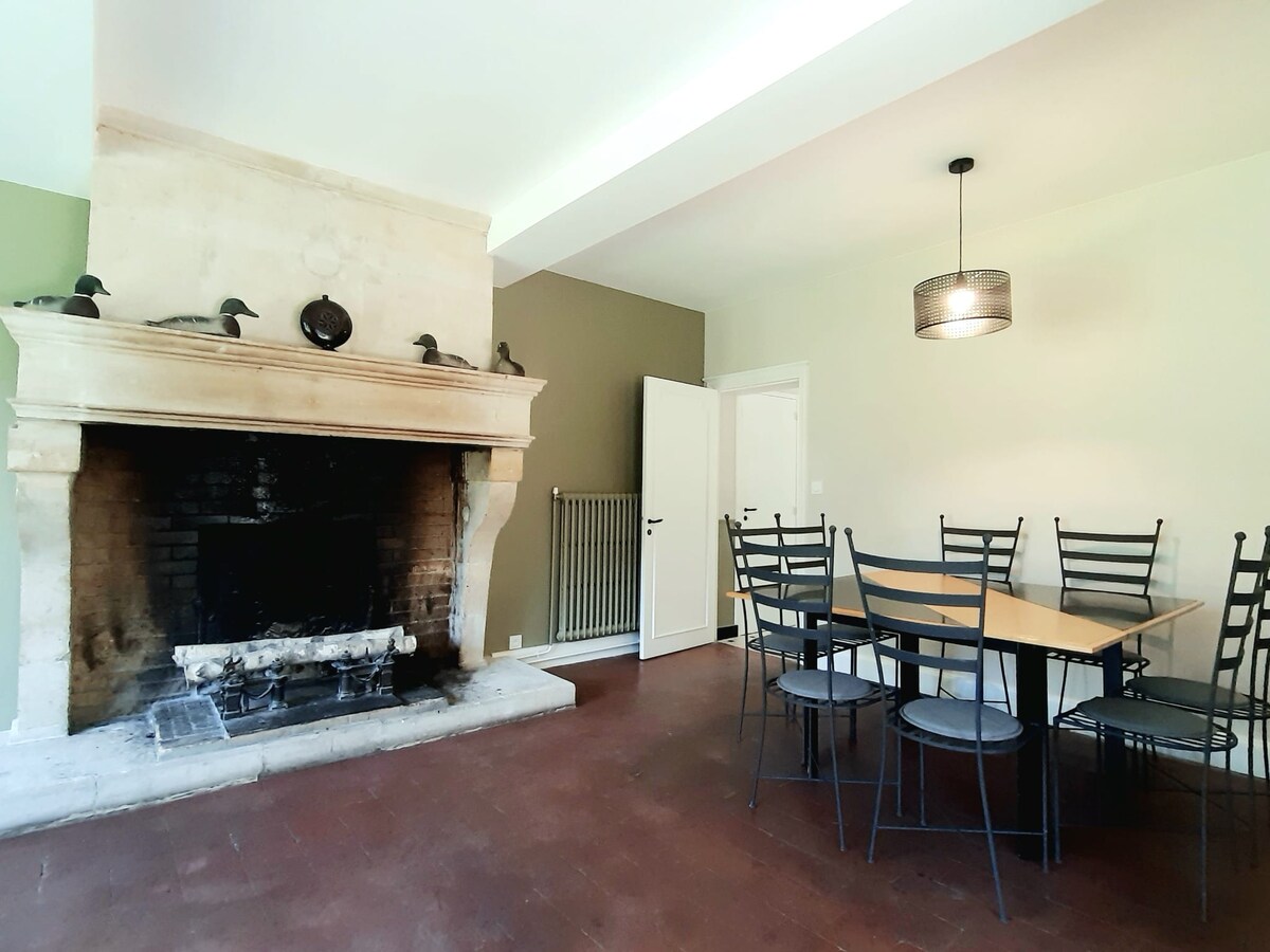 Nous vous proposons cette maison de maître entièrement à votre disposition datant de 1920. Décorée dans un esprit campagne chic, elle dispose de tout le confort d'un hébergement haut de gamme : cuisine équipée, 3 belles chambres (lits Queen size et lit d'appoint), 1 salle de bain, 1 salle d’eau, un très beau salon/séjour avec parquet en chêne, de belles hauteurs et des moulures d'époque.. de quoi passer d'agréables moments en famille, entre amis ou collègues, et profiter du grand jardin arboré.